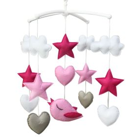Pink Bird Stars Hearts Handmade Baby Crib Mobile Infant Musical Mobile Boys Girls Nursery Hanging Toy